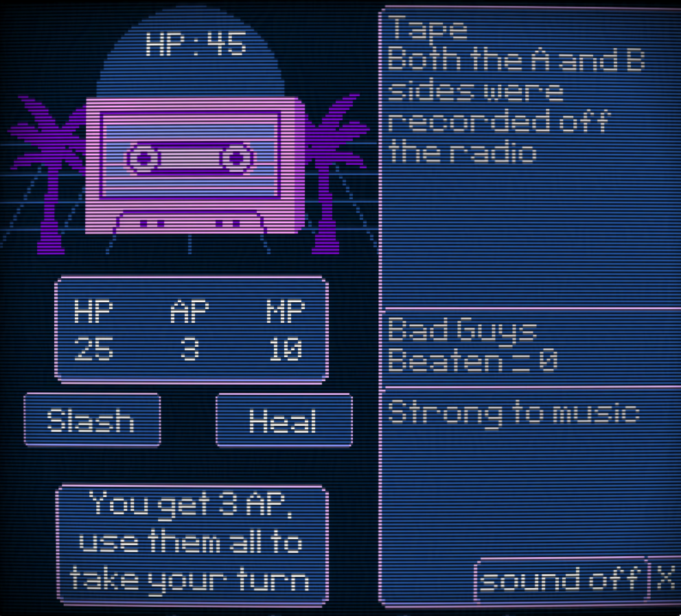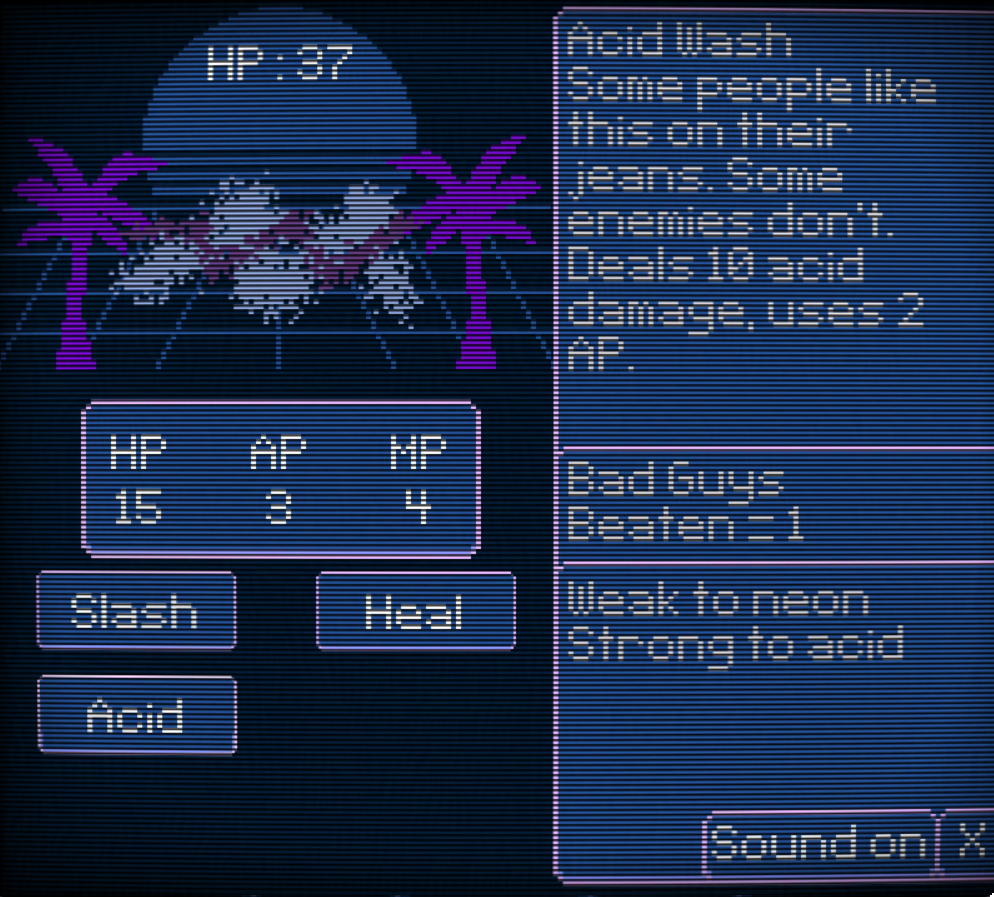 Vaporwave Battler is a turn based trip back in time where you'll use every gnarly move you've got to fight through the best the 1980s and 1990s has to throw at you.